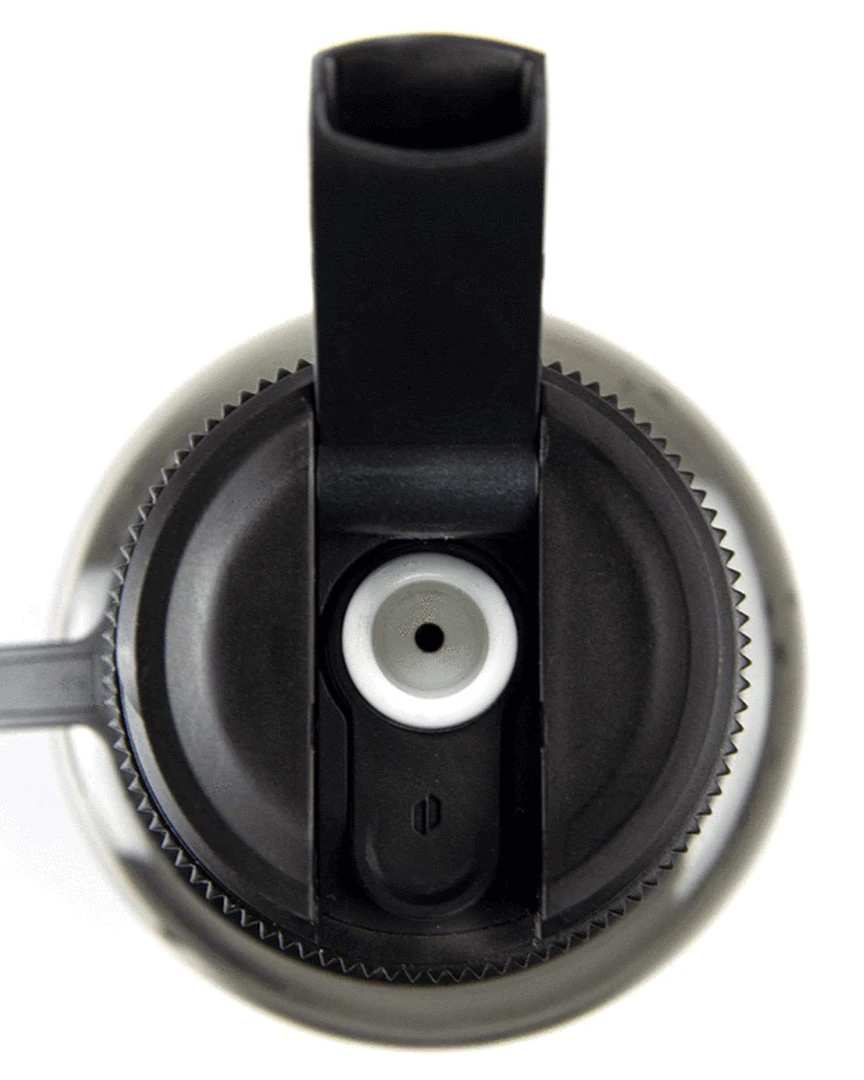 The bottle’s flip-spout is the mouthpiece. Everything is hidden away for storage on the Puffco Budsy, including the bowl, or out in the open like the down stem and disc perc which look natural, like a straw.Â