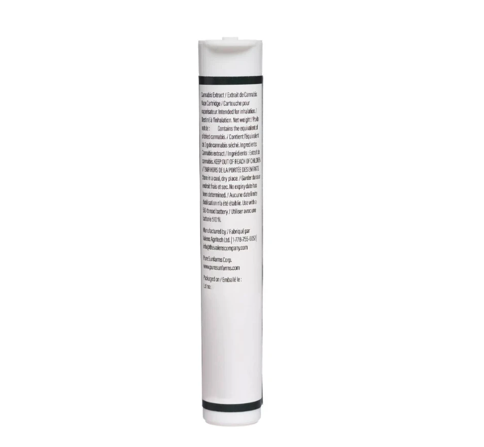 Pure Sunfarmsβ vape cartridges are filled with full-spectrum, single-strain, whole bud extracts – and nothing else. Just pure BC cannabis, providing smooth, clean flavour with every pull. Afghan Kush is an indica-dominant heirloom which offers flavours of white musk (myrcene), sandalwood and red peppercorns (caryophyllene), and wild mountain strawberries (linalool), carefully preserved in the terpene-rich extract. Fitted with a ceramic mouthpiece, and featuring a glass tank and ceramic heating coil, every component of Pure Sunfarmsβ cartridges is thoroughly tested for quality and safety.