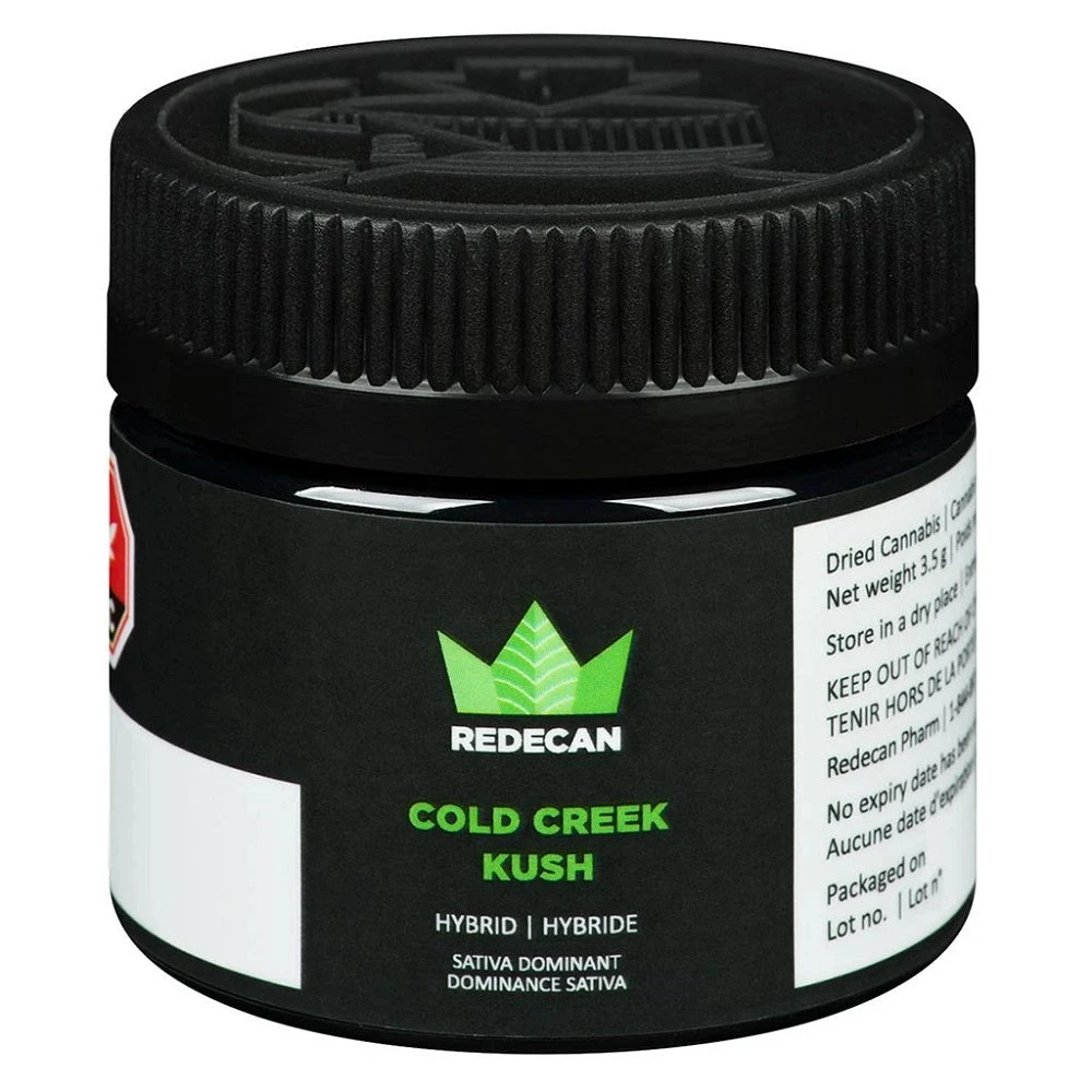 Cold Creek Kush from Redecan is a cross between MK Ultra and fellow Colorado native Chemdawg 91, with dense, heart-shaped, light green buds full of trichomes and amber hairs. Grown in the Niagara region of Ontario, the strain has very strong THC potency and a recognizable dank smell, much like a forest after a rainfall. Its taste profile, informed by its beta-pinene, nerolidol, trans-caryophyllene, linalool and limonene terpene mix, is strongly herbal, earthy and woody, with fresh sour pine.