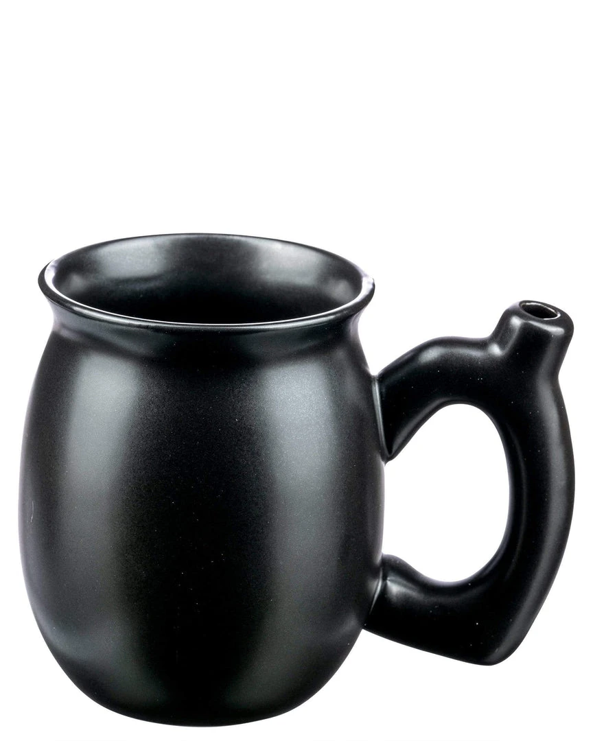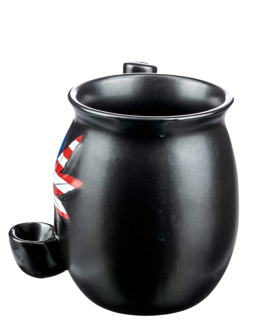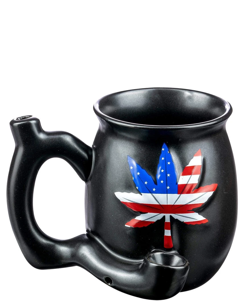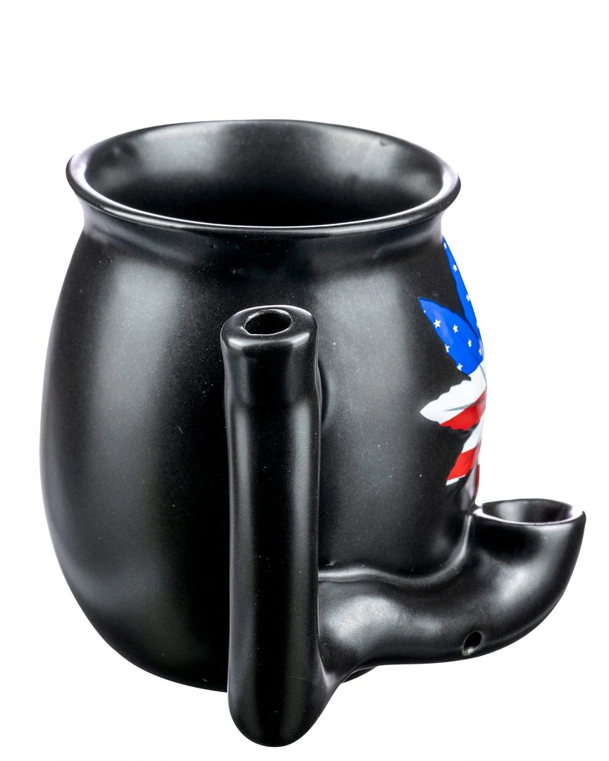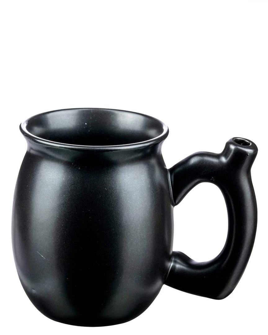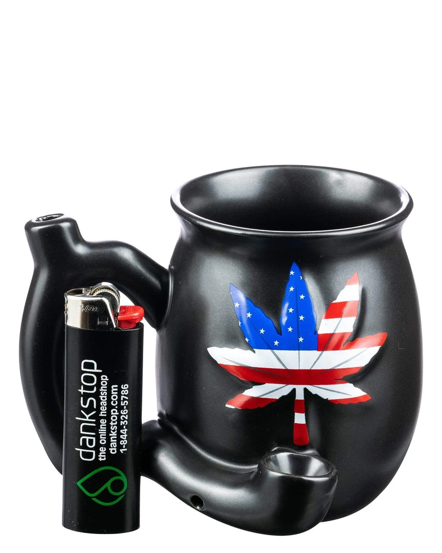 Hand made from quality kiln-fired ceramic, each of these Premium Roast & Toast Small Pipe Mugs feature a 3D molded Cannabis leaf on the mugs front face, an 11 fluid ounce cup, and a separately functioning sherlock spoon pipe built into the handle. At the top of the mugs handle you’ll find the hand pipes mouthpiece and on the righthand side of the deep bowl is a carb hole used to control smoke during inhalation. When the time comes, just wash these premium pipe mugs the same way you’d clean any other ceramic cup or bowl in your collection, Roast & Toast Pipe mugs are both dishwasher and microwave safe!Β