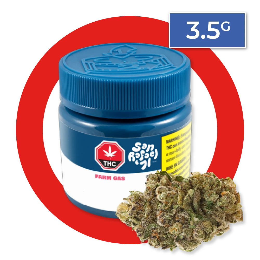 Farm Gas is part of San Rafael 71’s special lineup of proprietary strains that are crossbred. A hybrid strain, it’s primary terpenes are limonene, caryophyllene, and myrcene.