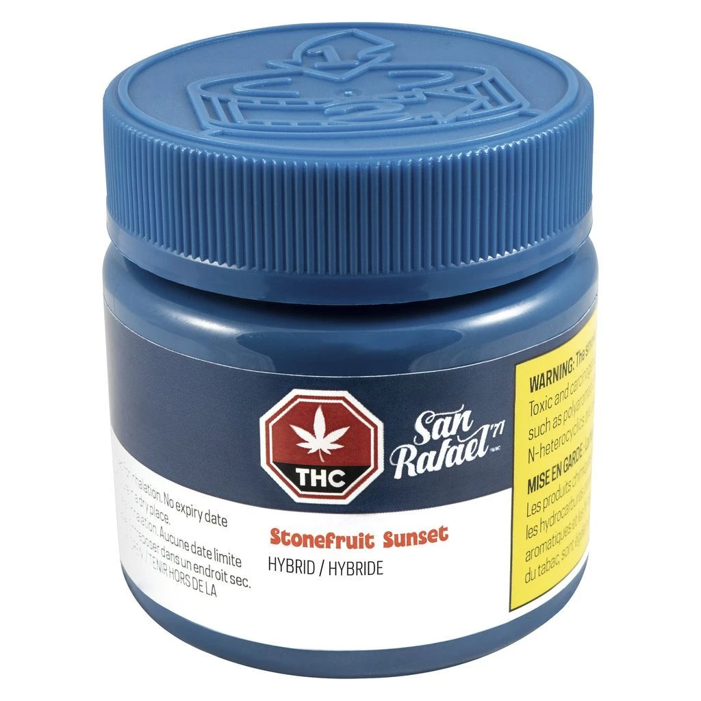 There’s no better scenery than our Stonefruit Sunset! Just crack open a jar and discover pure tropical chill with these big, vibrant green and purple buds covered in bursts of bright orange pistils. Take your nose on a funkadelic sensory ride with wild fruit, sherbet and gas aromas – all from a rad mix of caryophyllene, limonene and myrcene terps. Bred as part of our new proprietary lineup, this 100 per cent original strain is a gorgeous cross between classic Fuel and Gelato strains. With high THC, Stonefruit Sunset is your ticket to island paradise. All of our premium strains are hang dried, hand finished and hand bottled, so you only get the biggest, frostiest and stickiest buds. Every jar includes a humidity pack to help keep your buds fresher for longer.