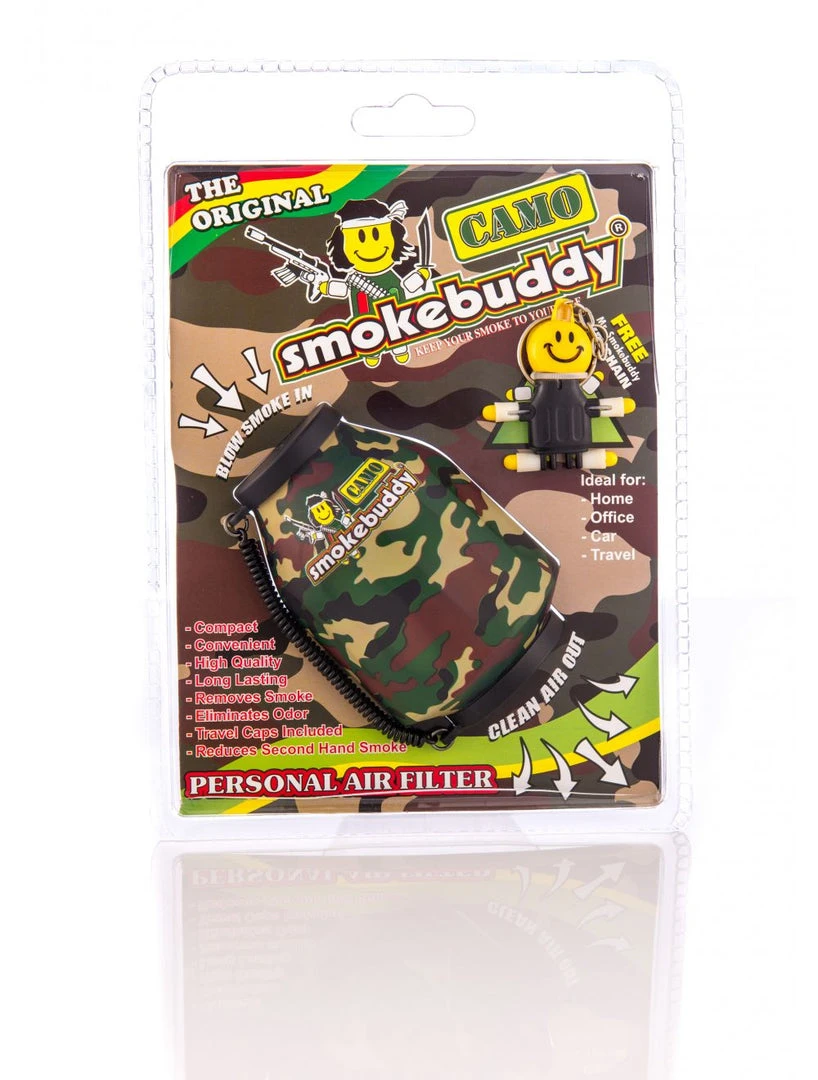 The Camo Smokebuddy is a handy, and reliable, life saving air filter. Simply exhale your smoke through your easy-to-use Smokebuddy and odorless air comes out the other end. Smoke where you want, and when you want without anyone knowing the wiser. Keep second hand smoke away from friends, family, and neighbors with your Smokebuddy. The Camo Smokebuddy is for the warriors that love camo, those who want to smoke safely.