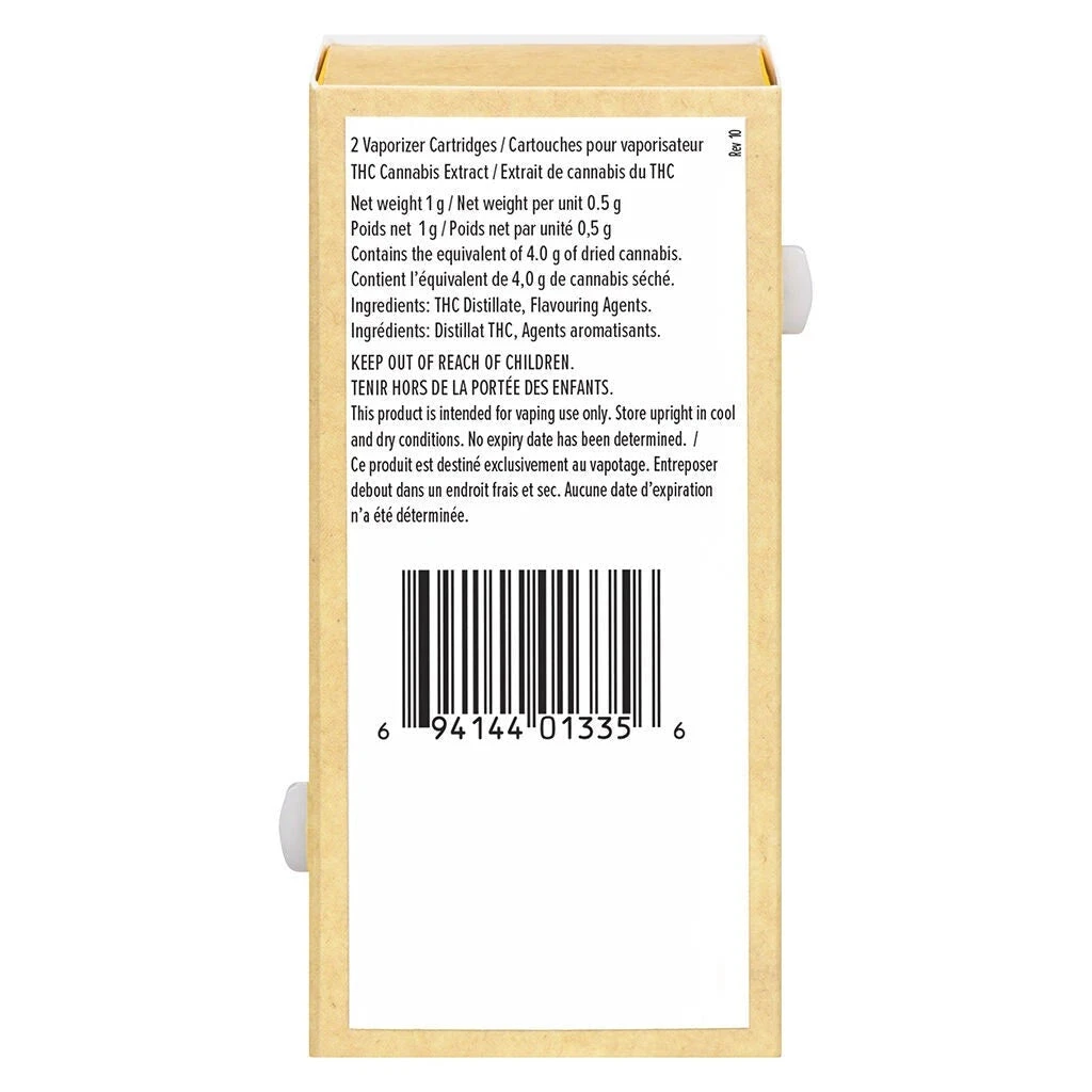 A 2pk of strain specific cannabis extract cartridges.