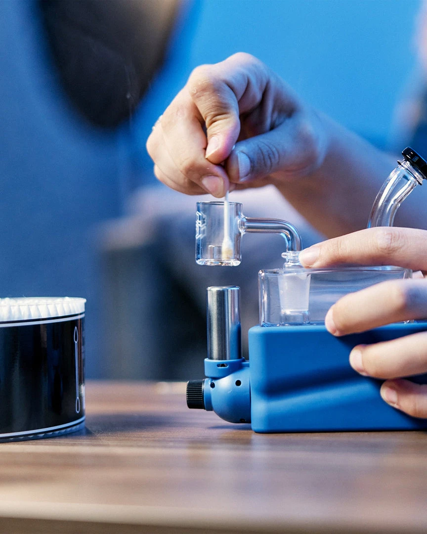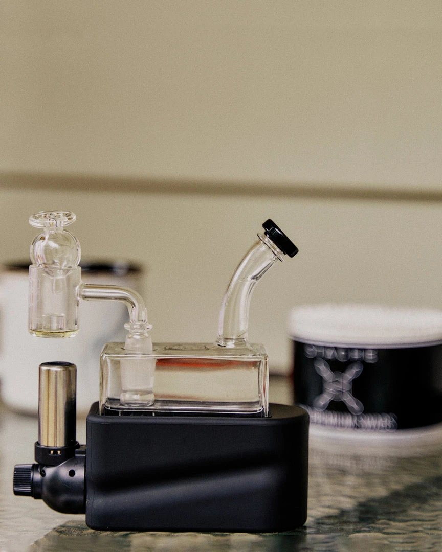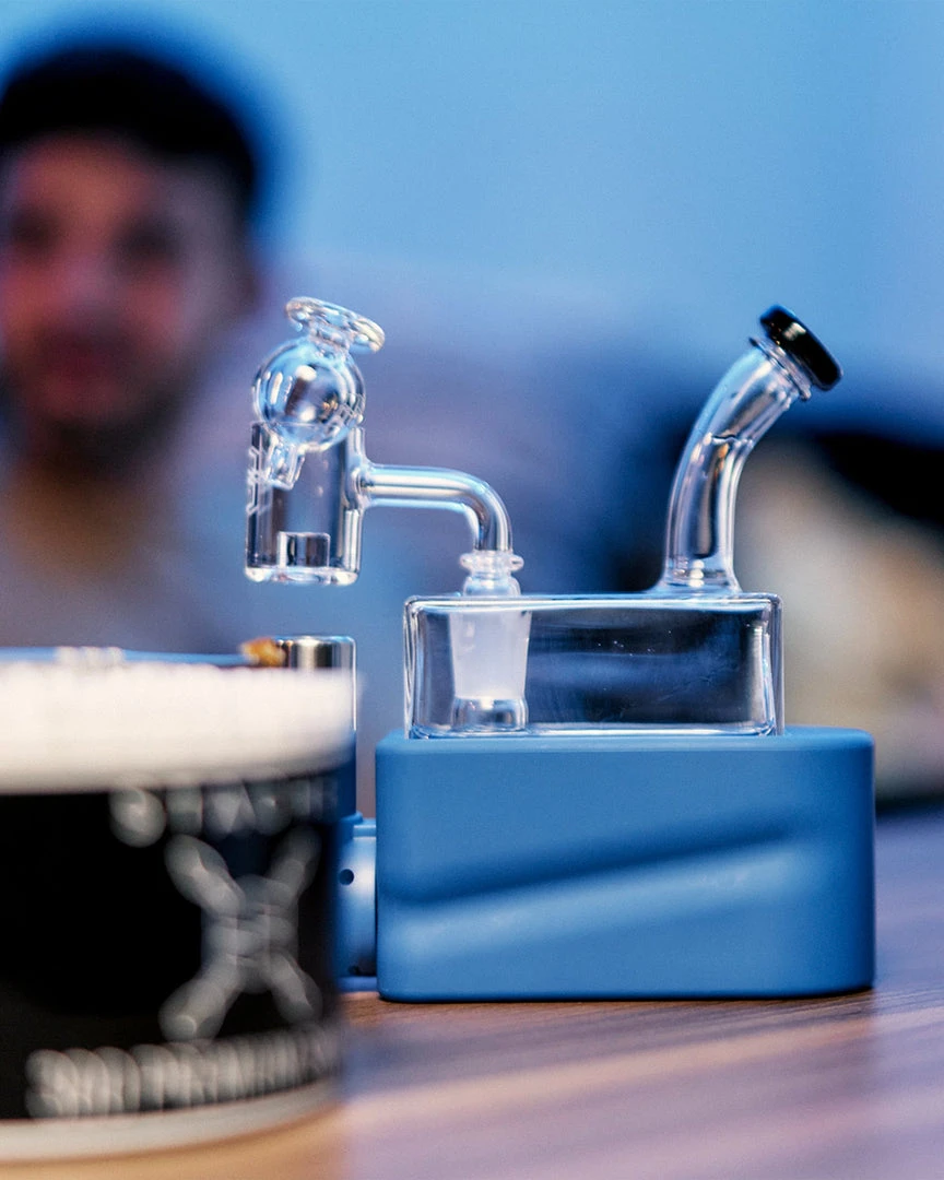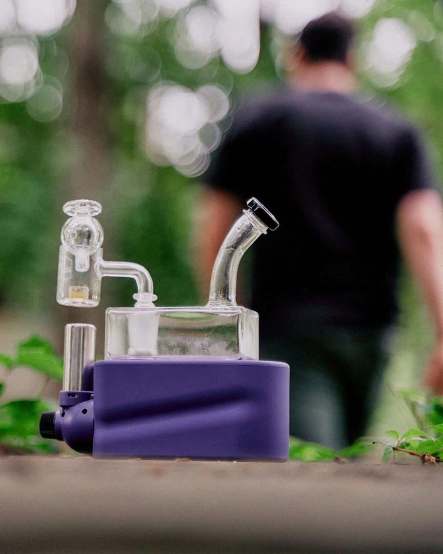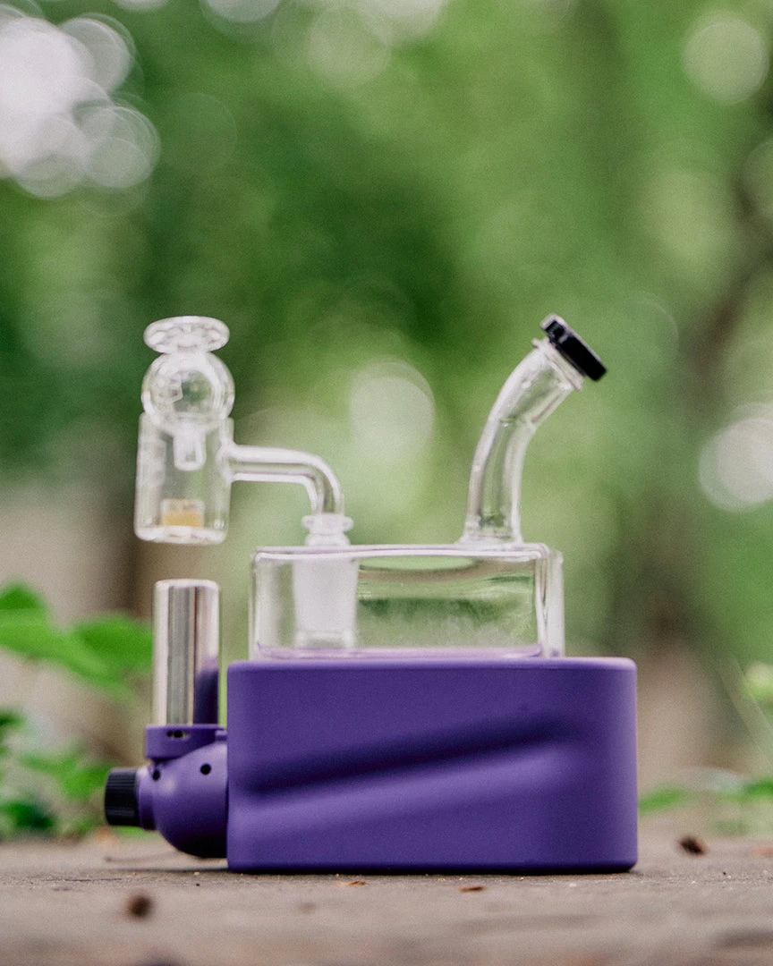 Made from uniquely crafted 4mm thick borosilicate glass, the Rio Rig features a flared mouthpiece, cube design, wide showerhead perc beneath a recessed 14mm female joint for less likelihood of breakage. The bubbler rests in Rio’s hard colorful base, which also houses a specially designed refillable, adjustable butane torch, heating a Core Reactor 14mm male quartz banger nail positioned above the torches nozzle. The Rio Matte Kit also includes a puddle pusher carb cap to ensure you get the most out of your concentrates.