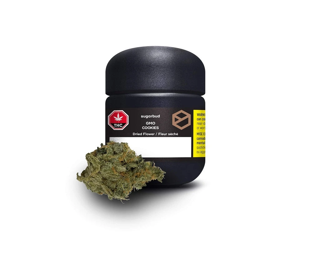 Sugarbud GMO Cookies is an indica-dominant hybrid strain created by crossing the world-famous Girl Scout Cookies and classic Chemdawg. The buds are thin, long, open-structured and delicate, with a mix of olive green accentuated by orange hairs and a sugary coat of shimmering trichomes. Sugarbud’s GMO shows all the classic aromas of musty cellars, savoury garlic, sweet spice and earthy coffee. Hang dried and cold barrel cured for up to 28 days, meticulously hand finished and packaged with care in our signature glass jar. We take pride. We take our time. Experience the Difference,