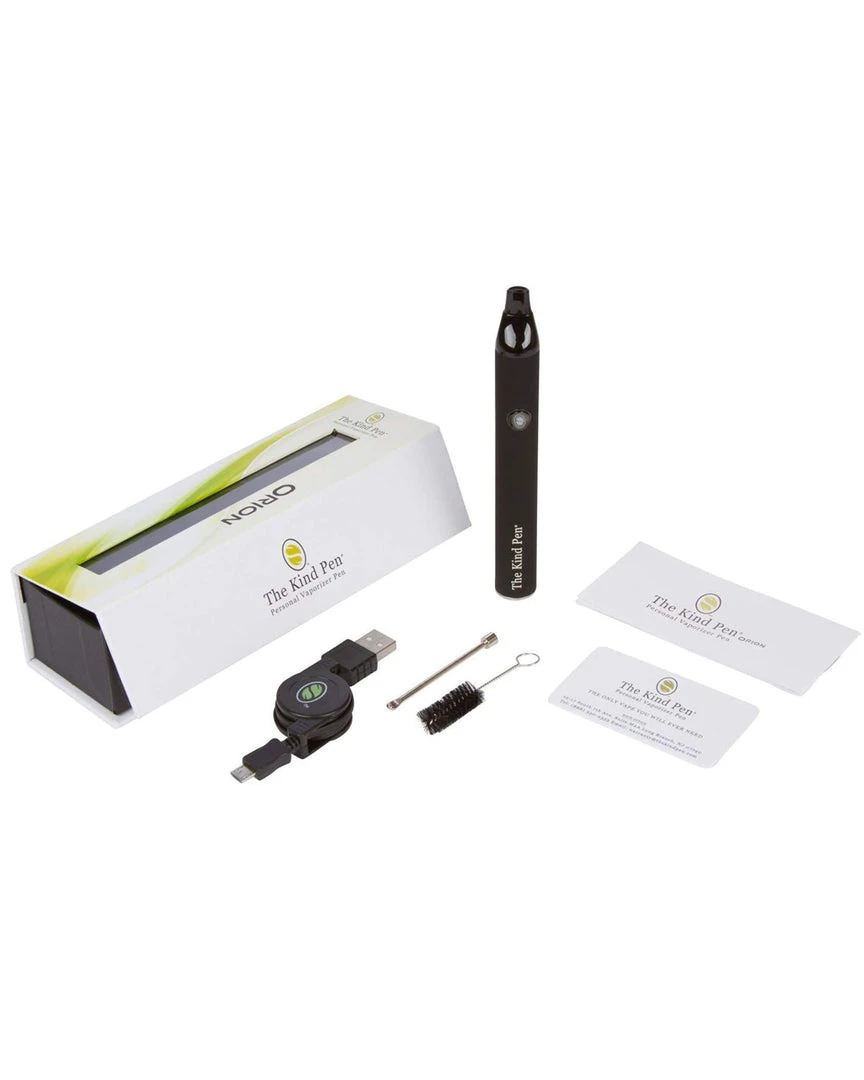 The “Orion” is a handheld vaporizer created by The Kind Pen, one of the most tech savvy companies in the vaping industry. Used for dry herbs, this vape pen has a stainless steel herb chamber with a capacity of 0.5 grams. The “Orion” is a portable device that purely vaporizes your dry herbs, never producing any combustion. Not only is this a zero combustion vaporizer, but it also heats up in a mere 30 seconds. It always maintains a temperature between 360˚F and 420˚F. As a safety feature, the power automatically shuts off after 6 minutes.