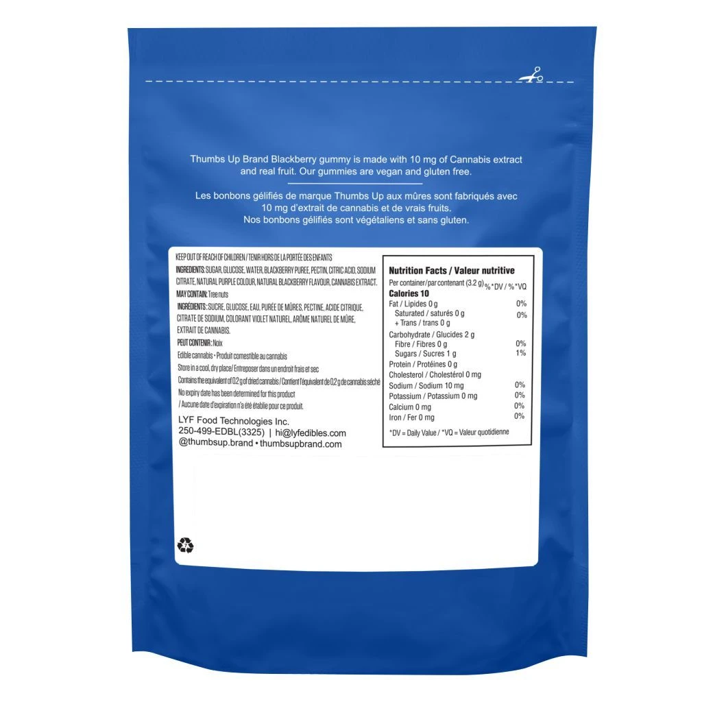 Juice up! Thumbs Up Brand Blackberry soft chew offers a deliciously juicy experience. Infused with cannabis extract, each piece contains 10mg of THC and is made with real fruit. Our soft chew contains no artificial colours. 10% of all profits from the sale of Thumbs Up Brand products are donated to Cannabis Amnesty.