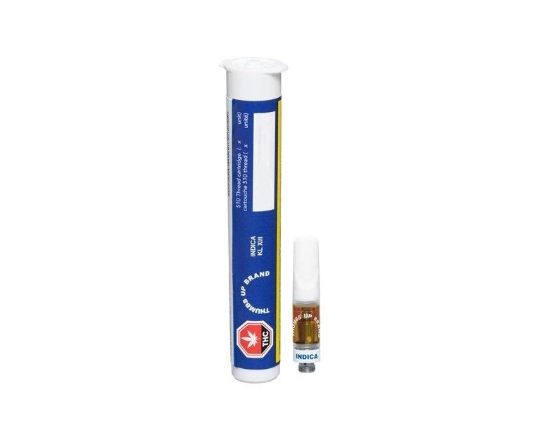 The highest of all kings. Thumbs Up Brand Indica KL XIII is a potent 0.5g vape cartridge made with THC distillate. Based on the popular California strain King Louis XIII, you can expect a spicy, citrus aroma. Dominant terpenes include caryophyllene and limonene. Thumbs Up Brand vape cartridges contain no carrier oils and are designed to be used with a 510 thread battery (not included). Cartridges are made with a high-quality ceramic mouthpiece and coil to create a consistent pull, and are designed to be leak-proof. All Thumbs Up Brand products have been rigorously tested, extracted, purified and formulated for precision use.