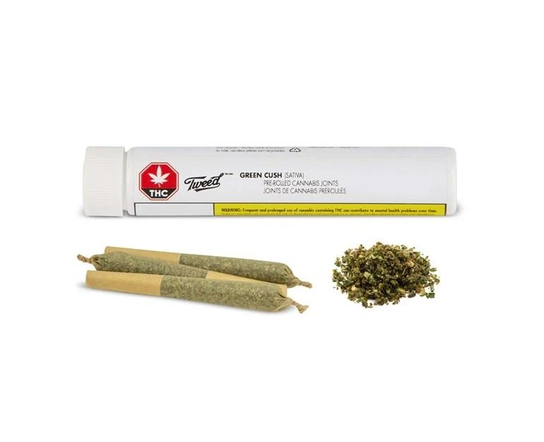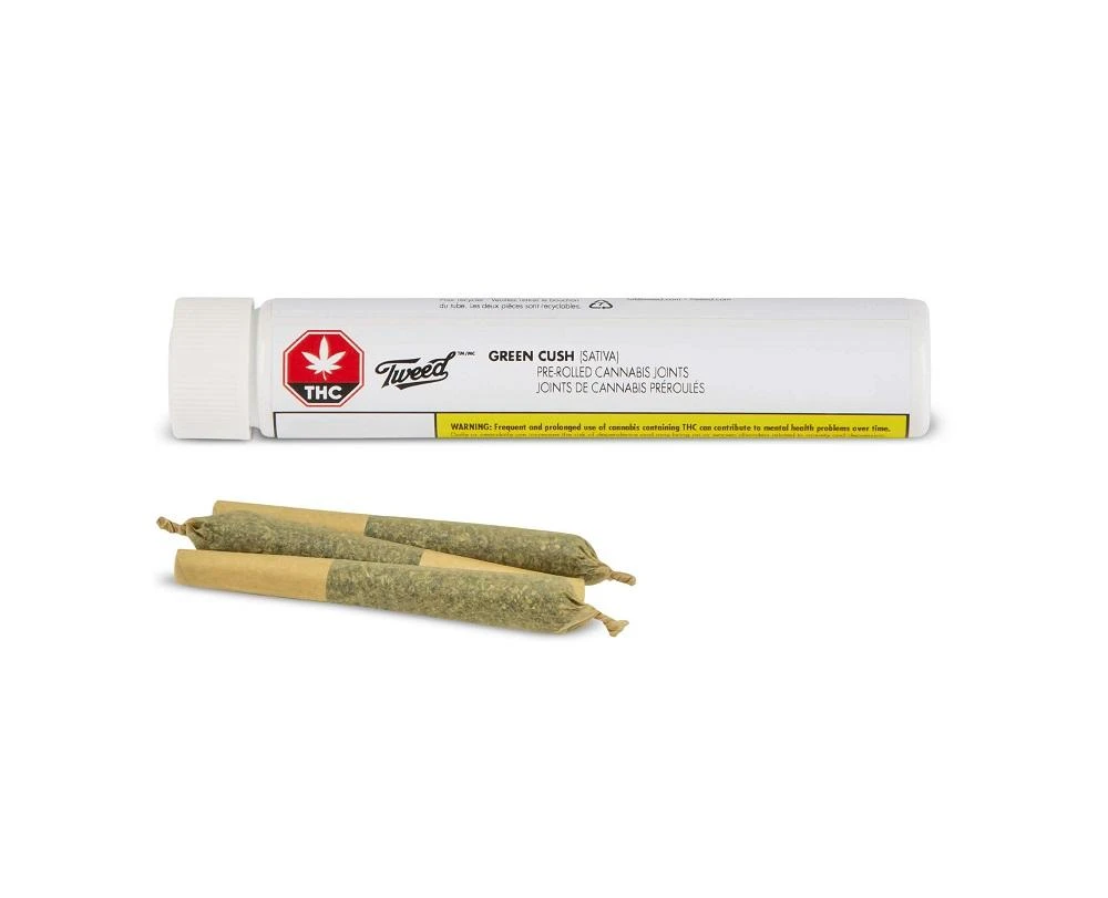 Tweed Quickies pre-rolls are evenly milled and machine rolled for a consistent burn. These Quickies are made with quality whole bud Green Cush, a high THC sativa dominant strain known for its dense buds covered in trichomes. The sweet aromas come from the dominant Limonene terpene, also found in lemons and oranges and balanced with skunky, diesel notes from Caryophyllene and Humulene. Tweed Quickies come in a reuseable, recyclable case, keeping them protected and ready when you are.