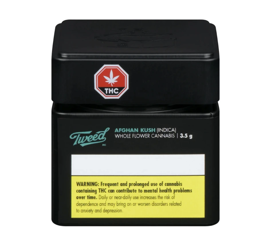 Afghan in ancestry but grown in Ontario greenhouses, Afghan Kush from Tweed is an indica-dominant strain with very strong THC potency, dense flowers and a trichome-rich appearance. Its terpene profile tends to lead with the earthy myrcene, but it’s balanced by the clove-like beta-caryophyllene and piney alpha-pinene. It’s available in various dried flower sizes and pre-rolls.