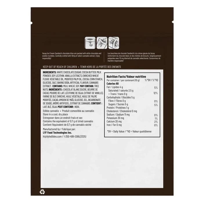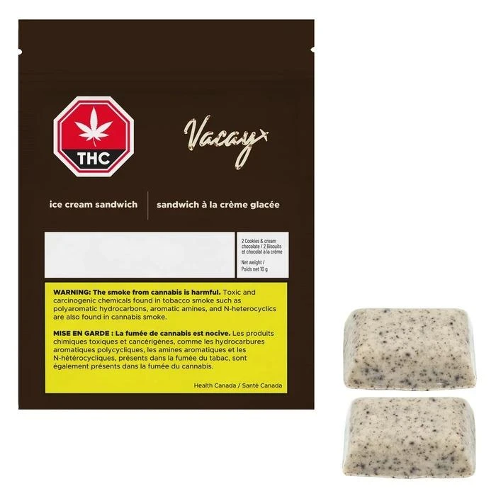 Two ice cream sandwich flavour chocolate bites, packed with white chocolate and cookie crumbles and carefully crafted with select cannabis extract. Each chocolate contains 5mg of THC.