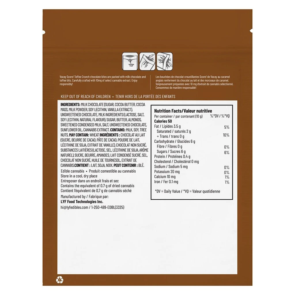 Score! Toffee Crunch chocolate bites are packed with milk chocolate and toffee crumbles. Carefully crafted with select cannabis extract. Enjoy responsibly!