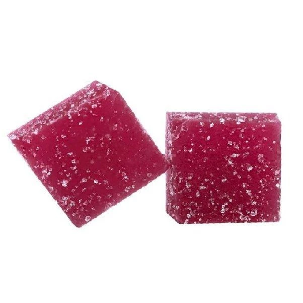 Two twisted berry fruit chews packed with real fruit juice and infused with 5mg of THC cannabis extract each.