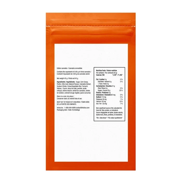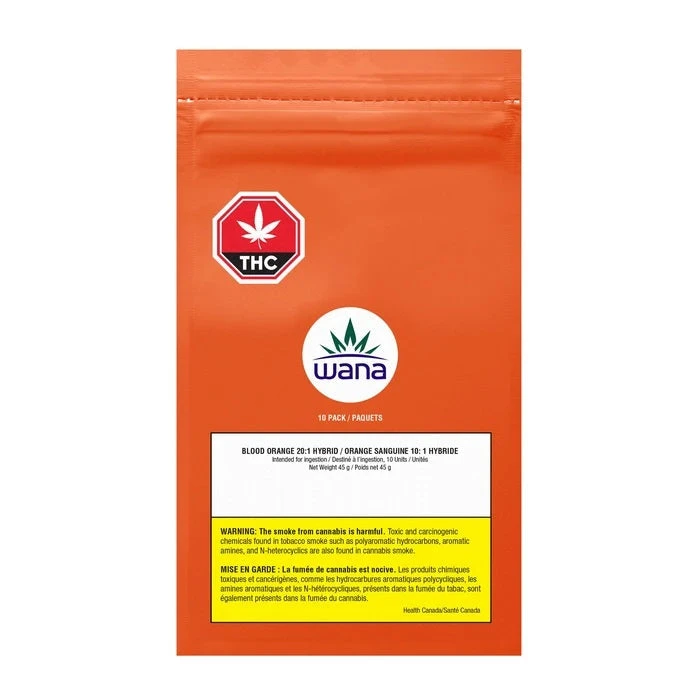 Wana Sour Gummies Blood Orange 20:1 have a sweet, citrus flavour with 20mg of CBD and 1mg of THC per gummy. Made with a terpene-enhanced hybrid blend, Wana Sour Gummies Blood Orange are handcrafted with pectin (never gelatin) for an elevated texture. Each package contains 10 gummies.