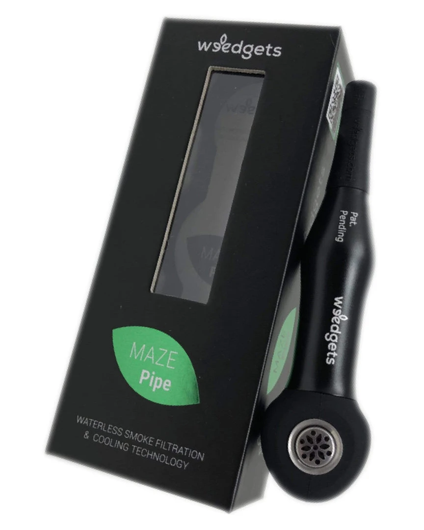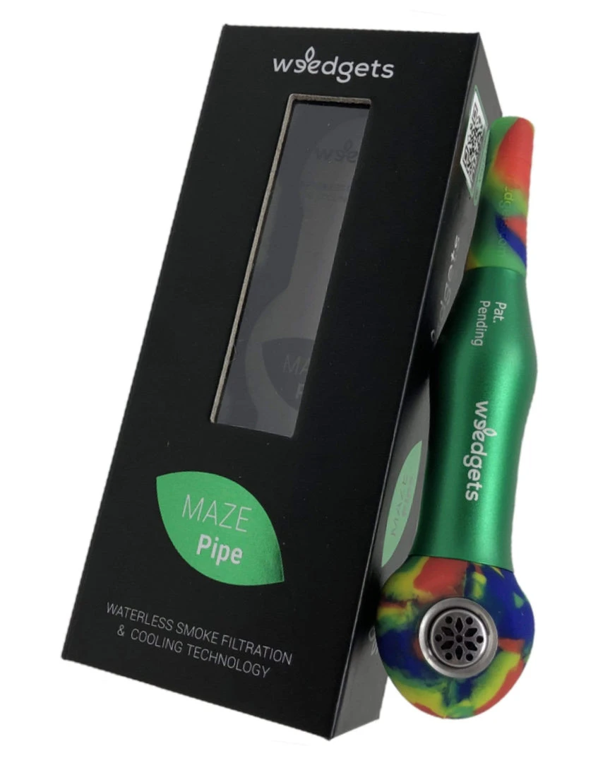 The virtually unbreakable Maze Pipe by Weedgets is a portable hand pipe with built-in, maze air-path technology that cools and filters your smokey hits. The pipe measures 10 cm / 4 inches in length and features a medical-grade silicone body and mouthpiece, an anodized aircraft-grade aluminum handle, and a surgical-grade stainless steel bowl. The pipe cleans the smoke as it’s pulled through the internal airway maze and does a great job of filtering out unwanted resin and tar while at the same time cooling your hot, smokey hits. This journey produces a smoother, more enjoyable hit packed with flavor but less harsh on the throat.
