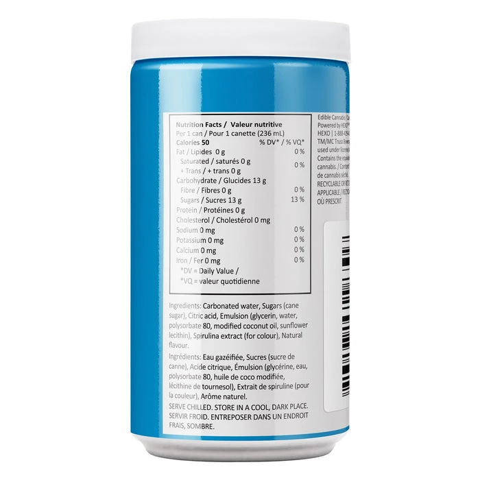 An Xplosion of blue raspberry flavour. Each can of carbonated beverage has 10mg of THC.
